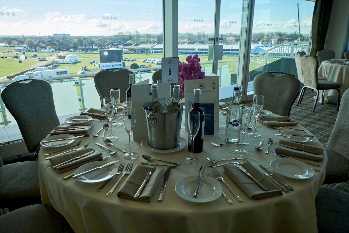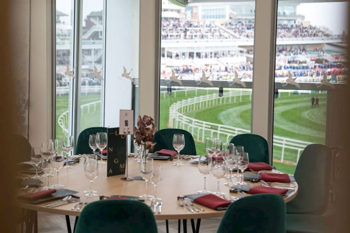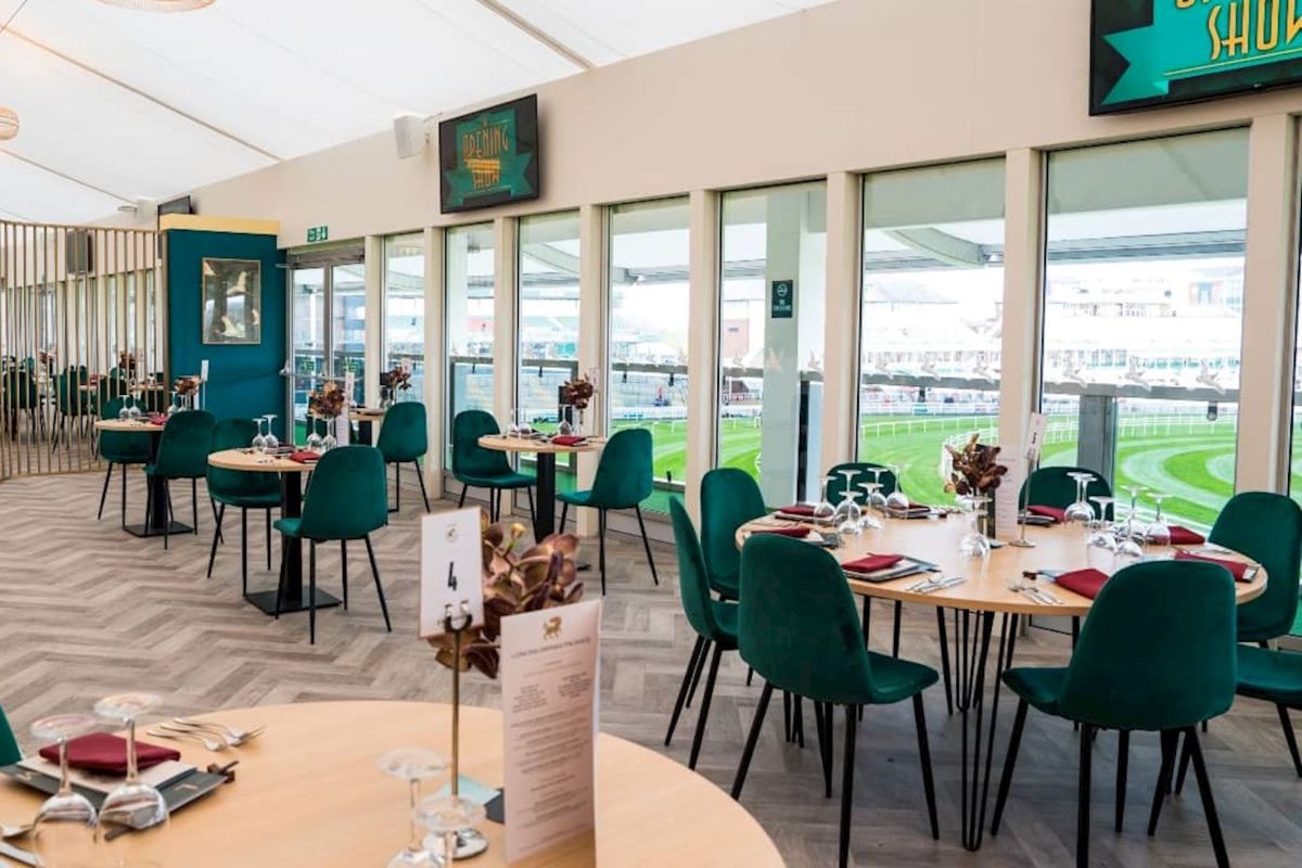 Enjoy an elevated outdoor terrace beside the horsewalk with close-up racing views, access to the Parade Ring, Red Rum Garden, private bar facilities, and live entertainment across the venue.